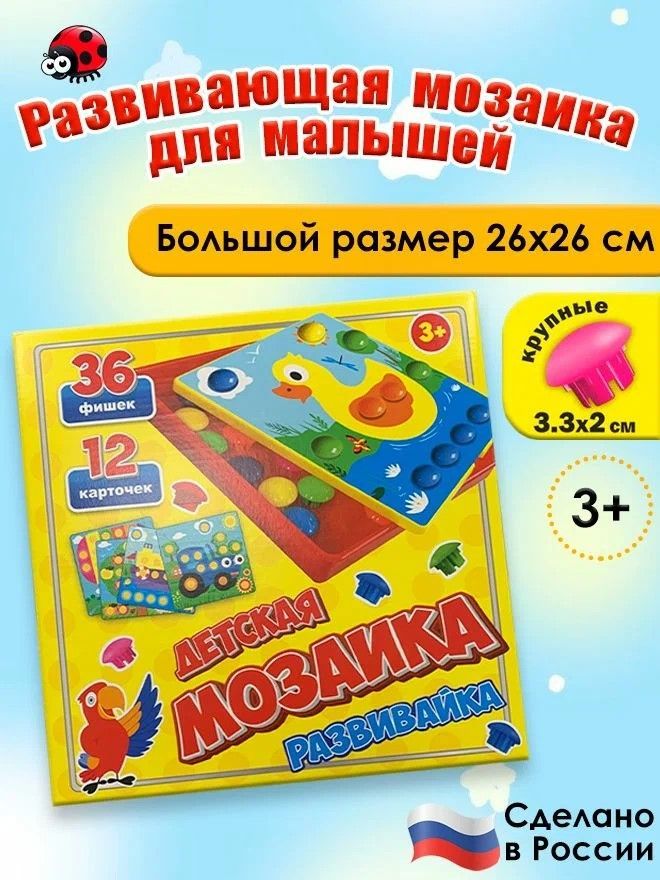 Детская МОЗАЙКА Развивайка. Учим английский (48 фишек,12 карточек)