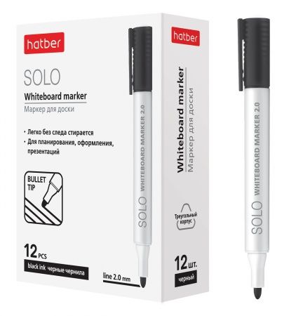Маркер Hatber Solo для магнитно-маркерных досок закругленный пишущий узел толщина линии 2мм Черный
