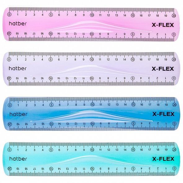 Линейка Пластиковая гибкая 20см Hatber X-Flex цветная-Ассорти- в пакете с европодвесом