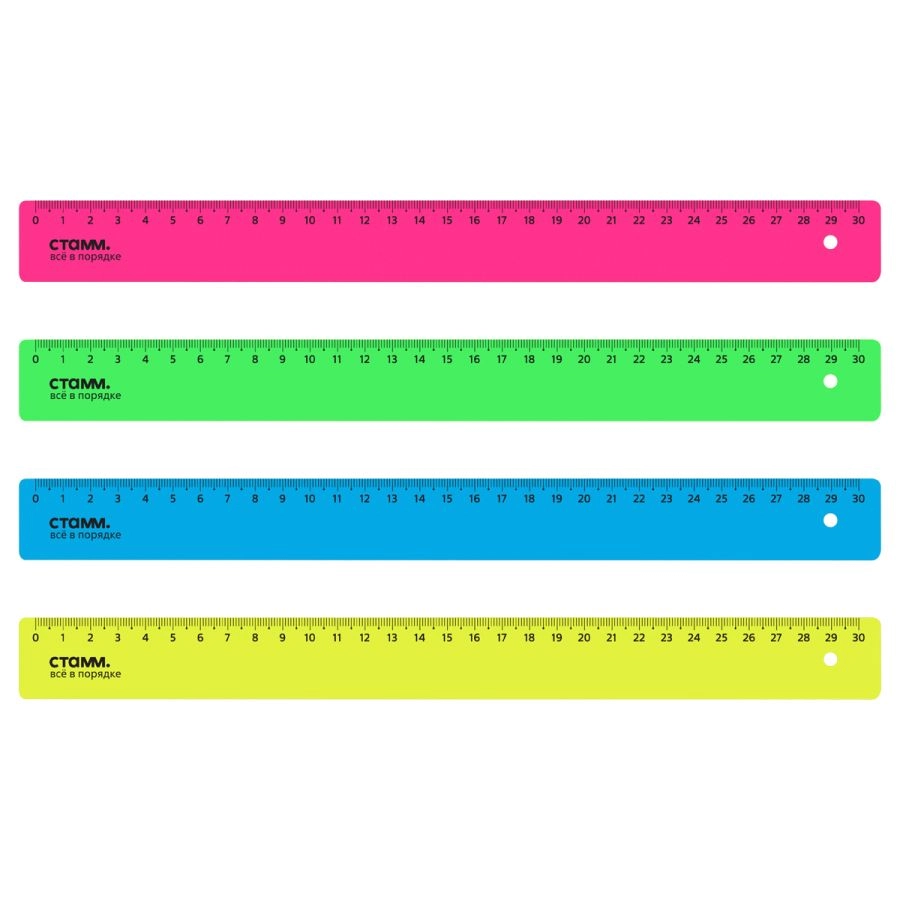Линейка 30см СТАММ, пластиковая, непрозрачная, неоновые цвета, ассорти