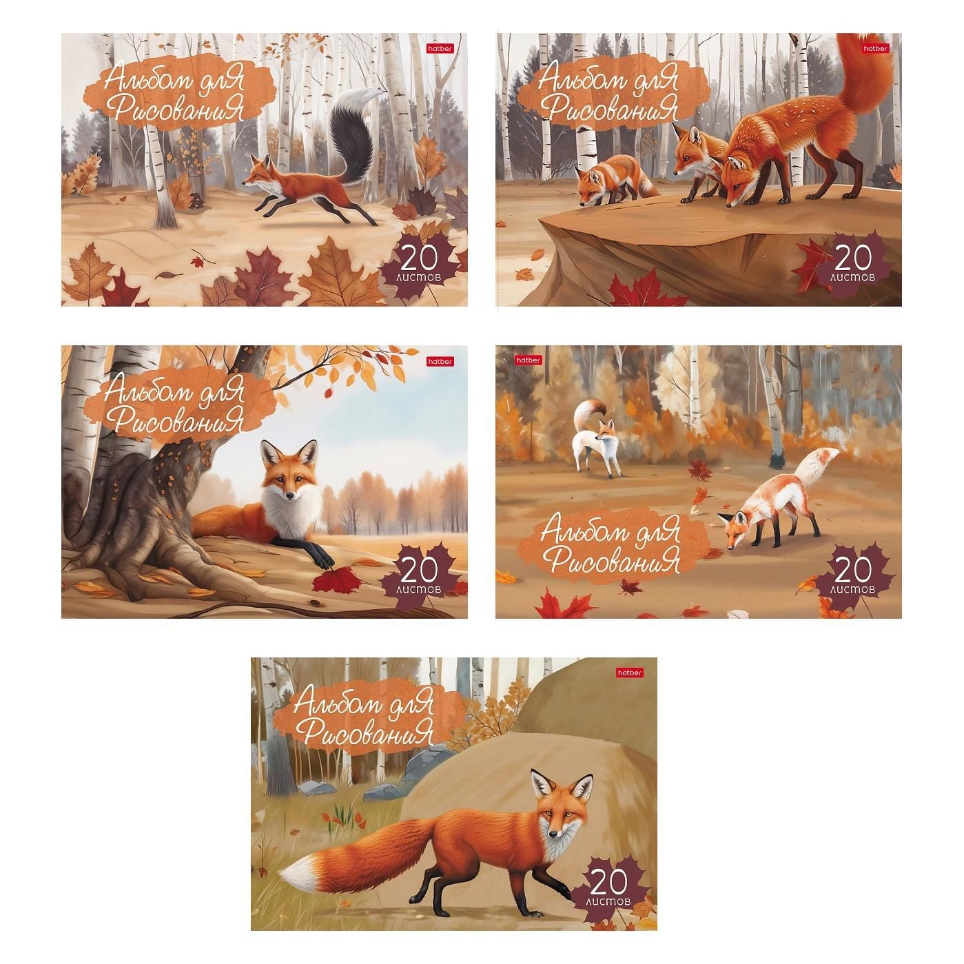 АЛЬБОМ для рисования 20л А4ф на скобе 5 диз.в блоке серия -Рыжие лисички-