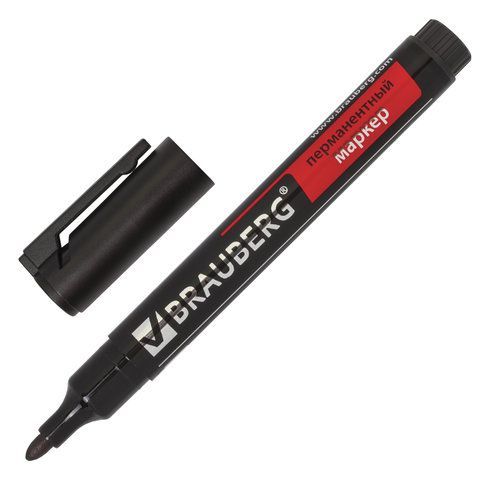 Маркер перманентный BRAUBERG "Energy", ЧЕРНЫЙ, круглый наконечник, 3 мм, с клипом,150475