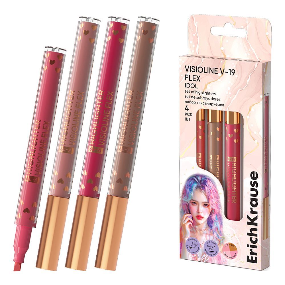Набор из 4 текстмаркеров ErichKrause Visioline V-19 Flex Idol, с гибким наконечником, цвет чернил ассорти