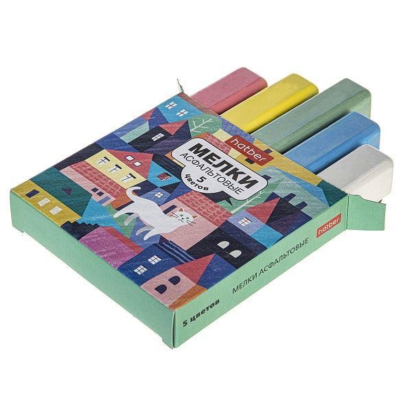 Мелки асфальтовые Hatber -Городок- 5 цв. в картонной коробке