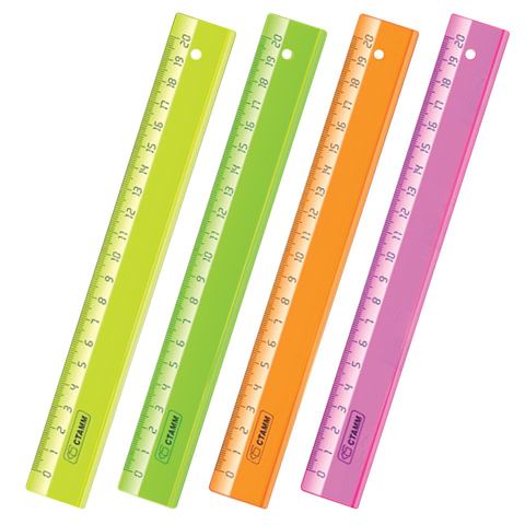 Линейка 20см СТАММ, пластиковая, прозрачная, неоновые цвета, ассорти