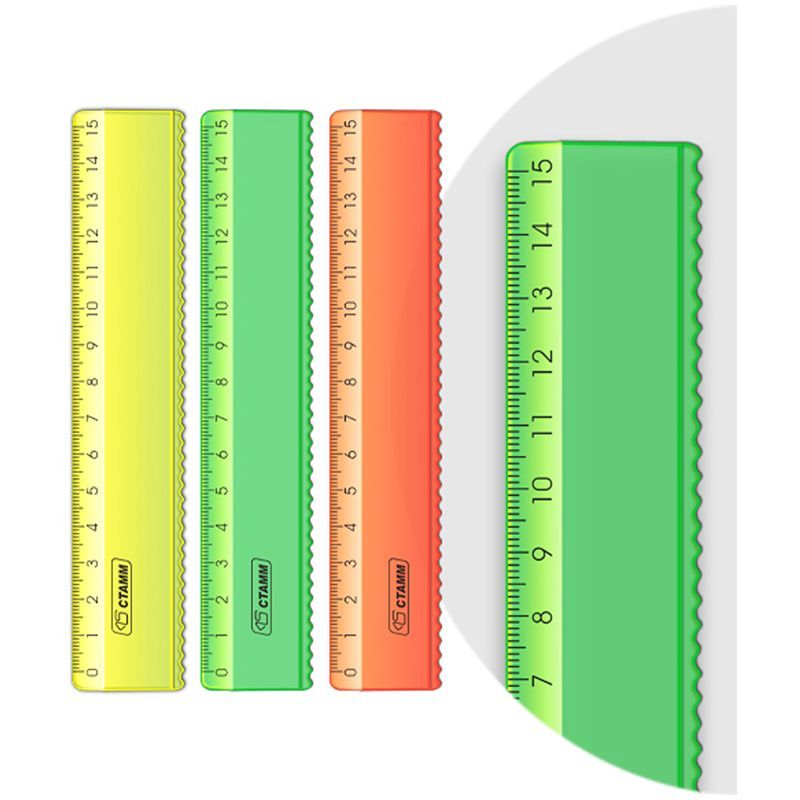 Линейка 15см СТАММ, пластиковая, с волнистым краем, прозрачная, неоновые цвета, ассорти