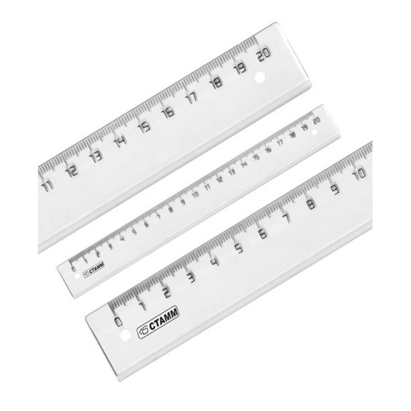 Линейка 20см СТАММ, пластиковая, прозрачная, бесцветная