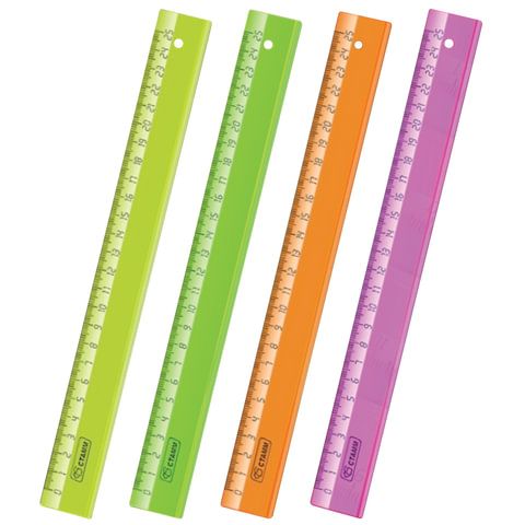 Линейка 25см СТАММ, пластиковая, прозрачная, неоновые цвета, ассорти