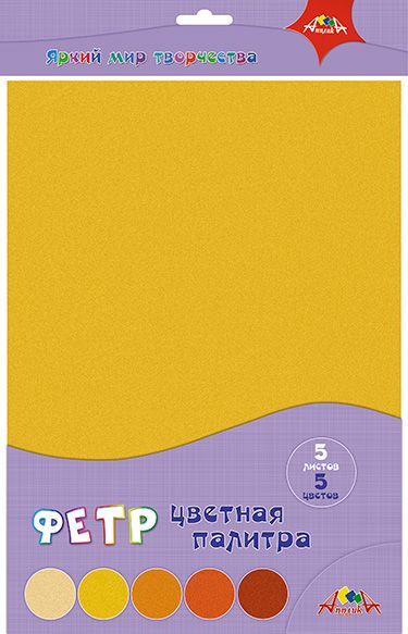 Фетр цветной 5листов 5цветов "Цветная палитра. Желтый"