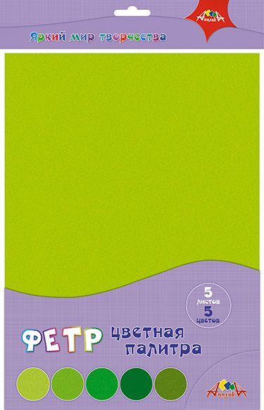 Фетр цветной 5листов 5цветов "Цветная палитра. Зеленый"